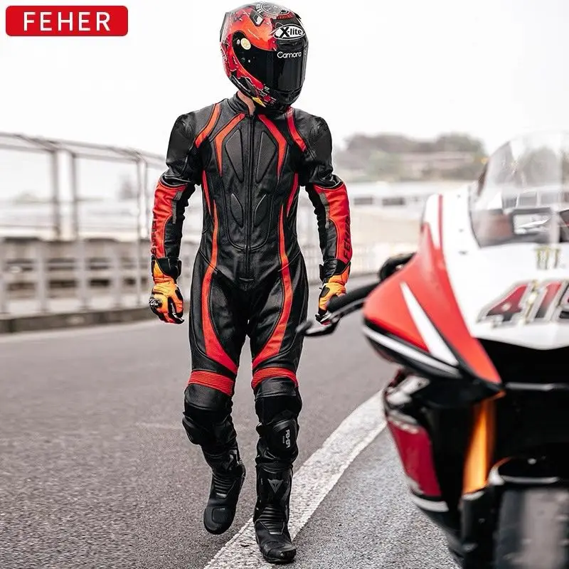 Feher One-Piece Motorcycle Riding Suit Motorcycle Leather Jacket Racing Suit Track Anti Fall And Anti Tear Protective Suit Ridin