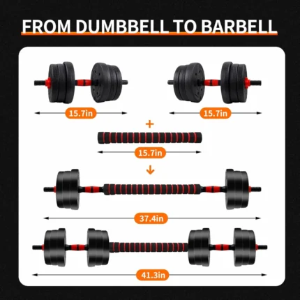 5-44lbs Adjustable Dumbbell to Barbell Set, Anti-Slip Grip, Versatile Home Gym Fitness Strength Training Barbell Weight Plates
