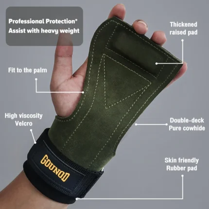 Gym Gloves Grips Anti-Skid Wrist Straps Palm Protector for Weight Lifting Support Deadlift Straps Pull-up Cowhide Fitness Gloves
